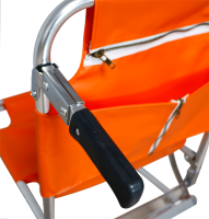 ساختار تاشو حمل آسان را تسهیل میکند و برای انتقال بیماران با شکستگی در بالا و پایین پلهها طراحی شده است. این محصول شامل یک کمربند ایمنی پهن برای اطمینان از ایمنی بیمار در حین انتقال است. این صندلی با دو چرخ برای تحرک روی زمین و یک دسته عقب تقویتشده که قادر به تحمل وزن قابل توجهی است، نیاز به دو نفر دارد که همزمان کار کنند.